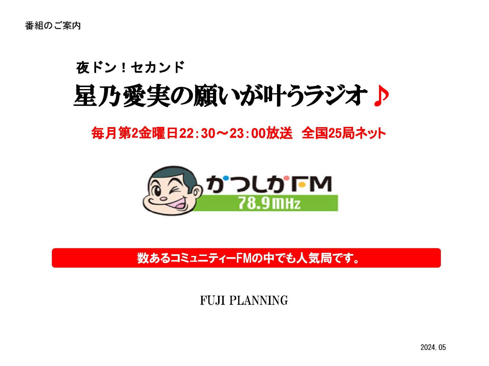11月5日(火) 15:30〜16:30 星乃愛実の願いが叶うラジオ概要-2024度版 かつしかFM 収録