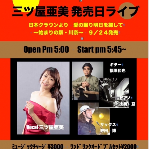 三ツ屋亜美の最新楽曲が9月24日についに発売! 発売日当日に記念ライブ...