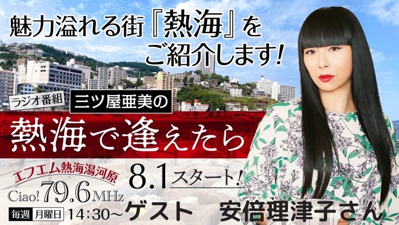ラジオ新番組「三ツ屋亜美の熱海で逢えたら」がエフエム熱海湯河原「Ciao!(チャオ)79.6MHz」で8月1日(月)より放送開始です。